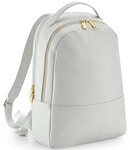 100% leather-look PU. Saffiano fine grain. Soft touch lining. Grab handle. Self fabric adjustable shoulder straps. Wheeled luggage handle strap. High shine gold metal zip. Main zip compartment. Discreet zip back panel pocket. Internal valuables zip pocket. Padded laptop compartment compatible up to 14". Internal water bottle holder. Tear out label. Capacity 10 litres.